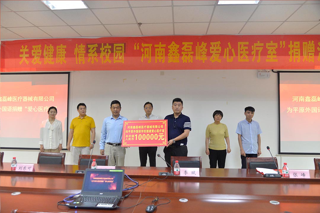 濃情五月,愛心滿園,5月26日上午,我們河南鑫磊峰醫(yī)療器械有限公司向平原外國語學(xué)校捐贈“愛心醫(yī)療室”,共捐贈額溫計100套、眼部治療儀60套、頸椎治療儀30臺、血壓計30套等總價值約10萬元的醫(yī)療產(chǎn)品。示范區(qū)科技和工業(yè)信息化局主要負責(zé)同志、河南鑫磊峰醫(yī)療器械有限公司董事長張峰、平原外國語學(xué)校副校長張東升等參加捐贈活動。